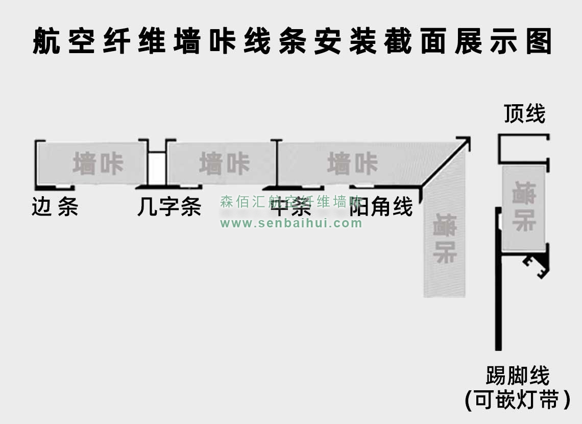 曲靖航空纤维墙咔铝合金带灯中条(哑黑氧化)